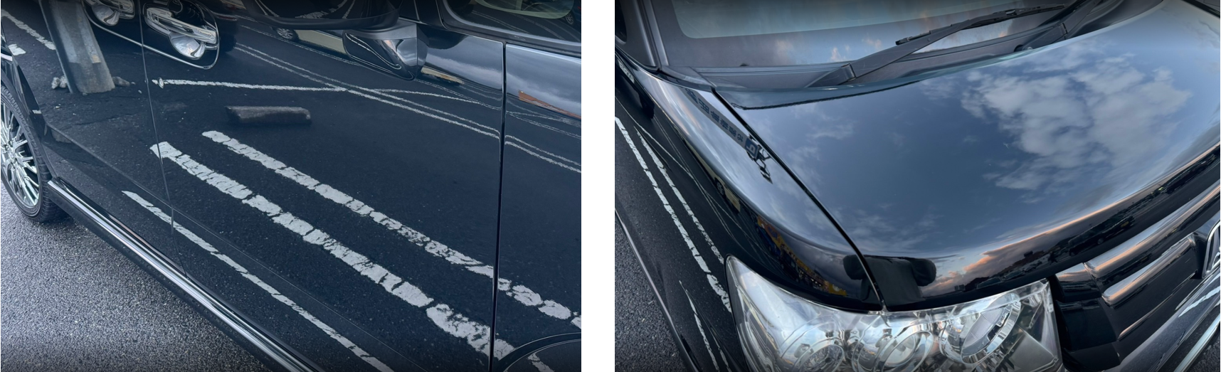 何年も経っていた車がピカピカになりびっくり。薄暗い夕方なのに空も、駐車場の白線も綺麗に車体にうつっています。またメンテナスもお願いしたいです。