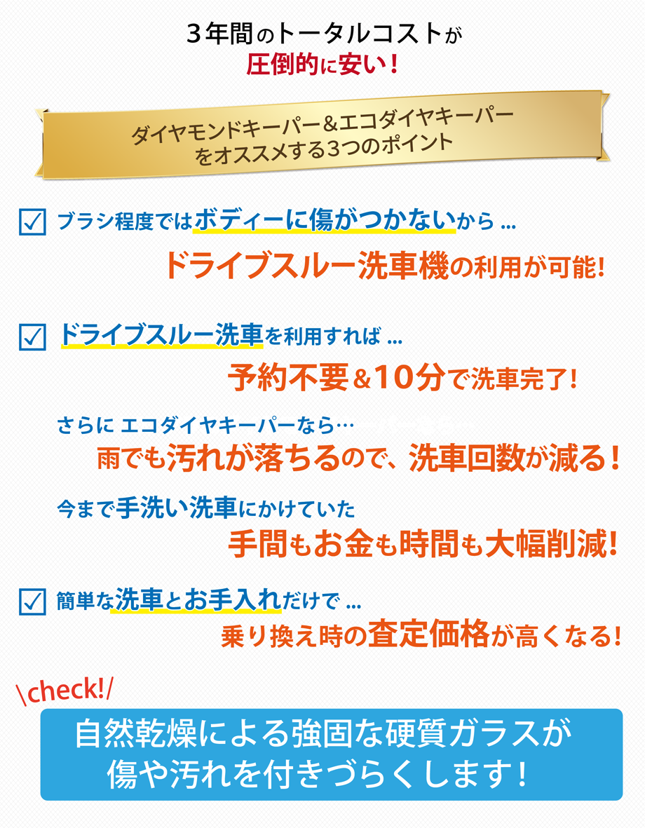 ダイヤモンドキーパーとレンズコーティングを施工して頂きました。