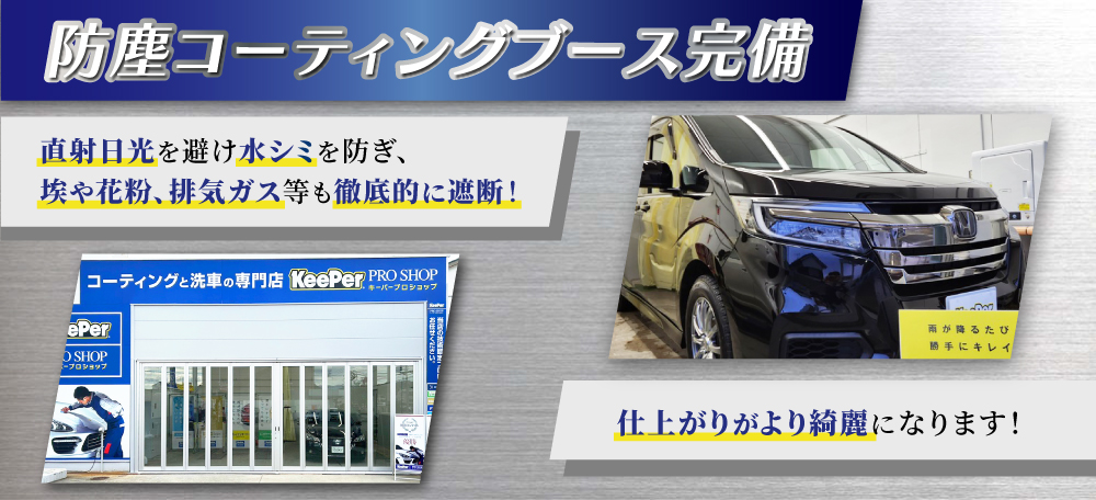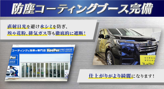 当店は専用の防塵コーティングブースを完備しており、細かい埃や日光を遮断した環境下で作業を実施いたします!
