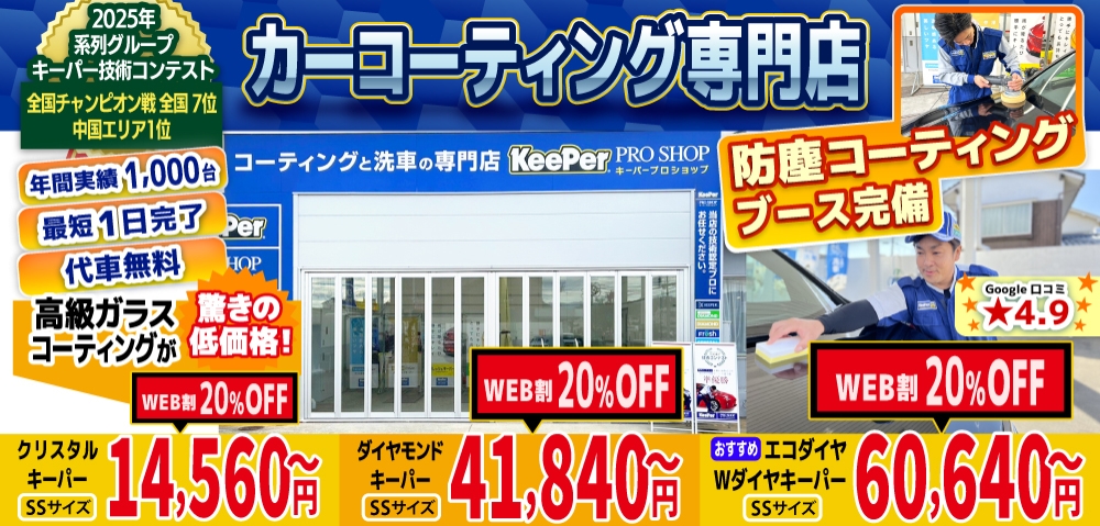 私達キーパープロショップは、鳥取市エリアのカーコーティング専門店として、日本ダントツのカーコーティングブランド、キーパーの正規代理店として認定を受けております!