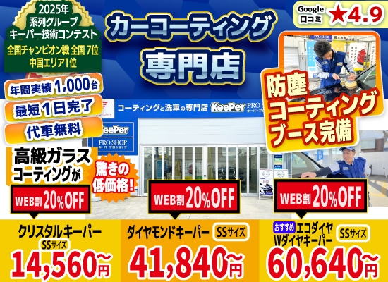 当社のコーティングなどの自動車整備関連サービスをご利用の際にも是非チェックしてみて下さい。