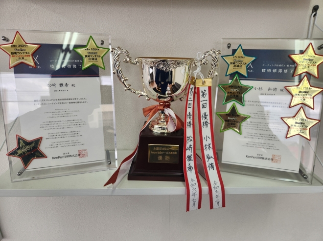 当店には、EXキーパー資格者3名、キーパーコーティング技術1級資格者3名 が在席しておりますので、安心してお客様の愛車をお預け頂けるかと存じます。